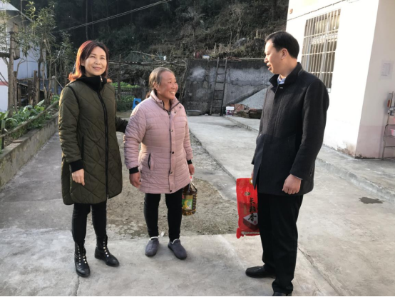 到钟山村后,李书记、黄院长入户看望了挂联帮扶脱贫户,并送去米、油等慰问物资,详细了解了脱贫户的生活情况,鼓励他们要坚定信心,听党话,跟党走,配合村组干部工作。脱贫户岳俊伟表示:“党的政策好啊,感谢学院这么多年的帮扶,鼓励我们搞养殖,帮助我们脱贫,现在家里黄羊都20多头了,腰包鼓起来了,日子一天比一天好咯!”。 临行前,镇村干部将“弘扬扶贫济困美德 爱心助推脱贫摘帽”“院村共建促发展 真情帮扶换新颜”的锦旗送到李书记、黄院长手中,感谢学院为钟山村的发展做出的贡献。