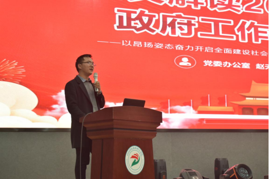 赵天成结合开元官网实际对2021年全国“两会”工作报告中的相关内容进行了解读,尤其是“两会”期间习近平总书记的重要讲话精神、“十四五”规划,以及政府工作报告中对于教育的工作部署。希望全体教职工进一步加强“两会”内容的学习,深刻把握“两会”精神,在各个岗位上发光发热,为学院发展建设添砖加瓦。