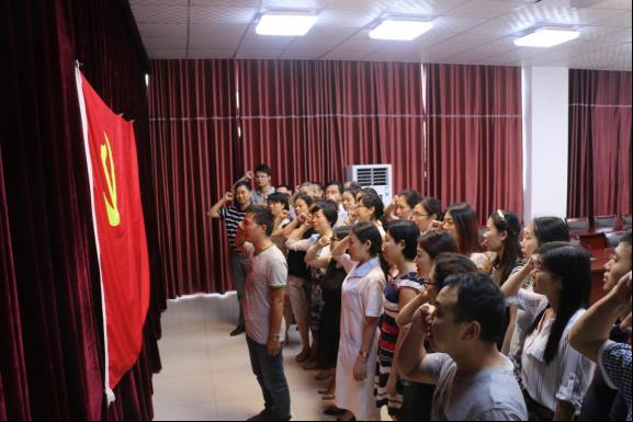 讨论会最后,曾晓奇和支部党员一道,面对着鲜红的党旗举手宣誓,重温了庄严的入党誓词,将共产党员对党的忠诚牢记心间。