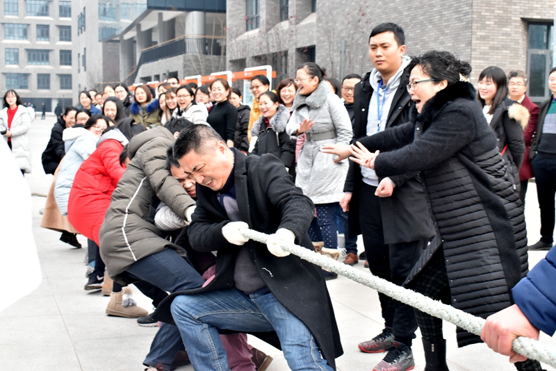 为促进教职工之间的交流,营造积极向上、团结协作、和谐发展的校园文化氛围,1月23日下午,学院2019年教职工迎春拔河比赛在仁济广场举行。来自各工会片区的13支代表队参加了比赛。学院领导亲临现场,为选手们加油鼓劲。