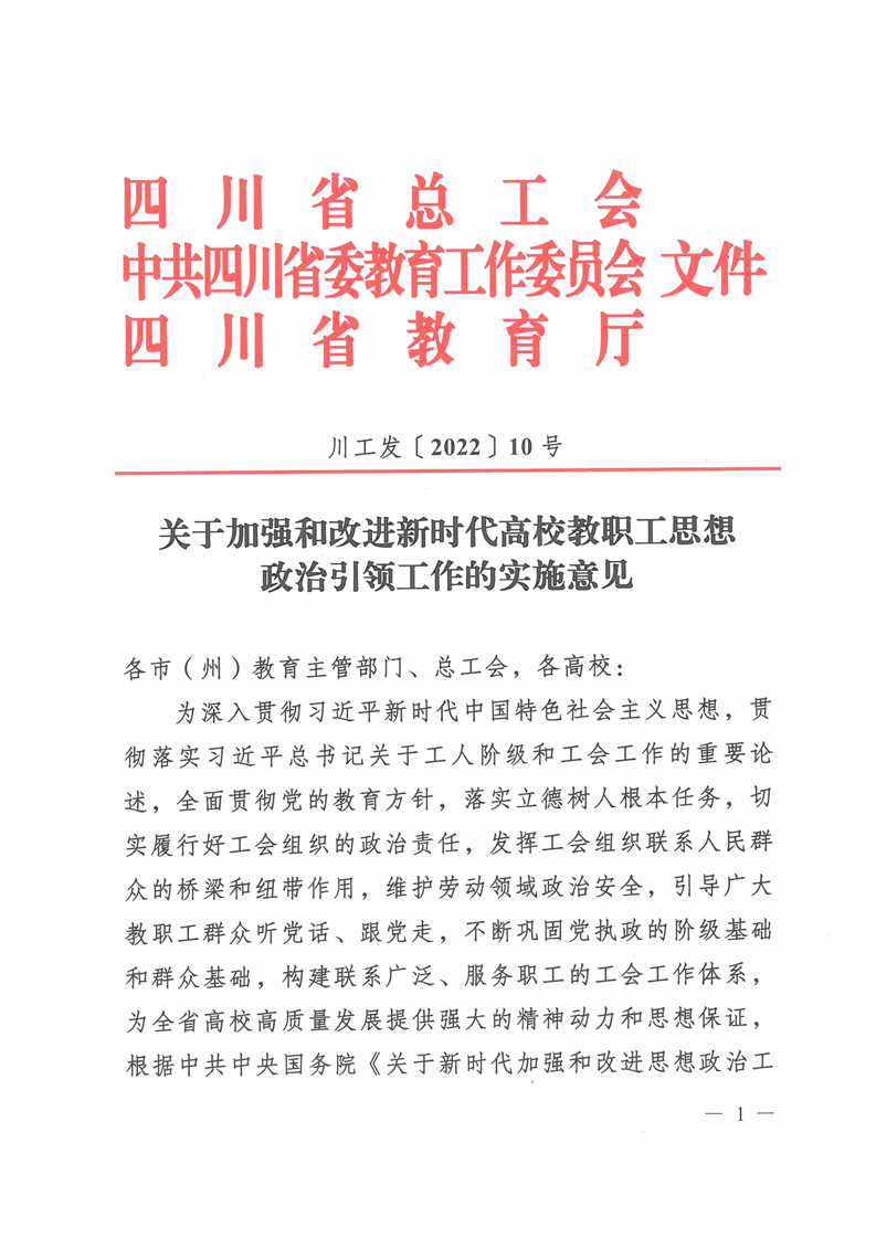 关于加强和改进新时代高校教职工思想政治引领工作的实施意见