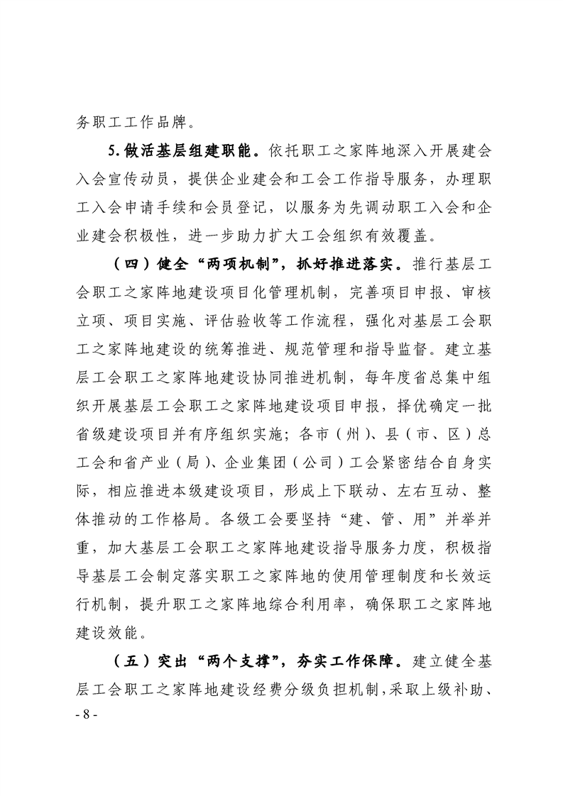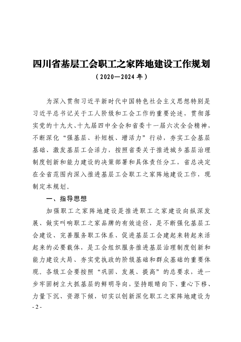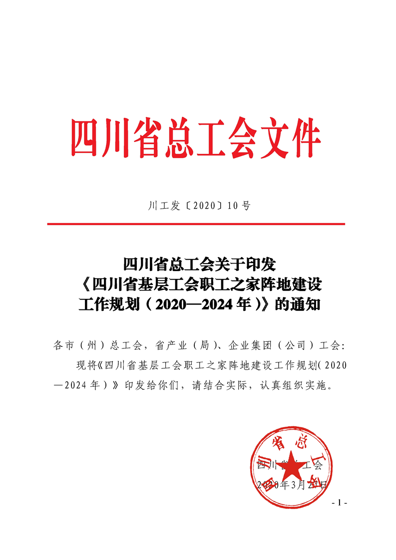 (川工发[2020]10号)关于印发《四川省基层工会职工之家阵地建设工作规划(2020—2024年)》的通知
