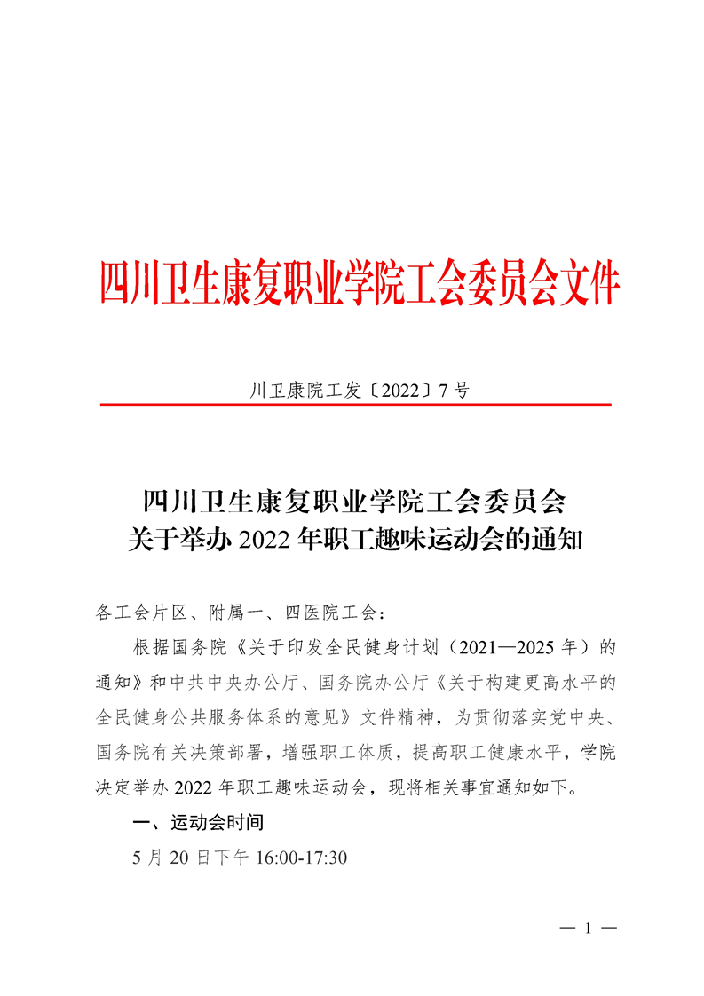 关于举办2022年职工趣味运动会的通知