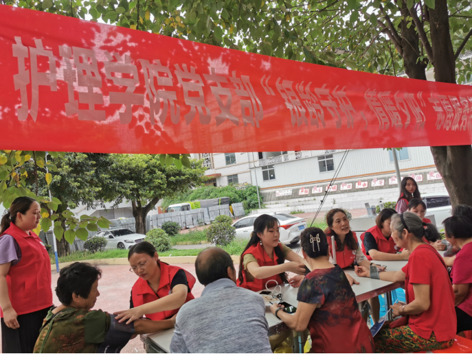服务群众,党员先行。护理学院党支部积极传播“仁爱”精神,以实际行动擦亮支部党建品牌,充分发挥了基层党组织的战斗堡垒作用。