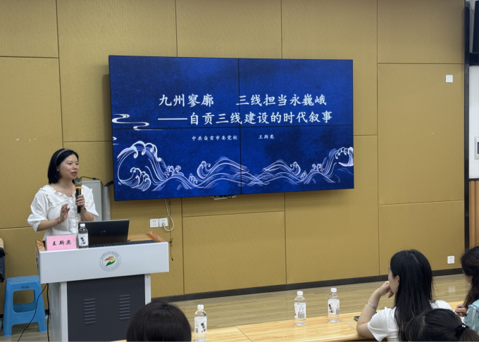 课上,王斯奕老师从“三线建设”的背景及概况、“三线建设”在自贡、自贡“三线建设”的时代价值等方面,将“三线建设”这一重大战略决策娓娓道来,带领现场师生共同感受了“三线建设”对于全国和自贡的历史意义和现实影响,体会了“三线建设”培养出的坚韧创新的城市品格,汲取了“三线建设”赋予的新时代继续奋勇前行的智慧和力量。