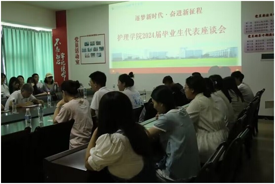 6月28日下午,护理学院师生融合党支部“逐梦新时代 奋进新征程”2024届毕业生代表座谈会在3-B211顺利召开。学院党总支书记杜永红、副院长段河军、支部党员、入党积极分子及师生代表参加了本次座谈。