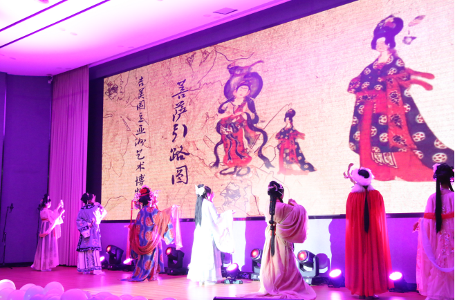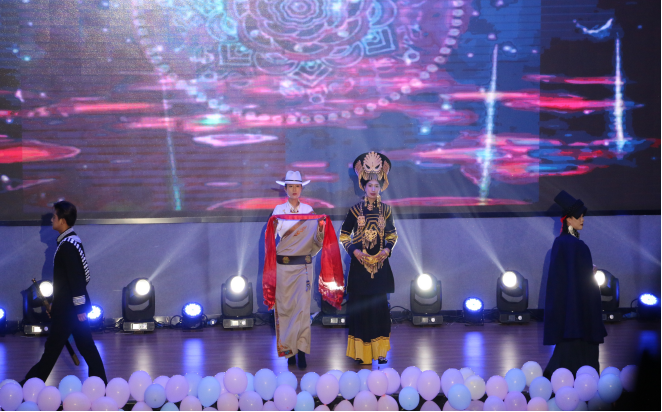 晚会现场热闹非凡,幕布剧、乐队演唱展示了同学们热爱生活、多才多艺的青春风采,《坐上火车去拉萨》《民族时装秀》等节目以其独特的民俗风情表达了民族团结的深厚情感,《文物“当归”之汉服秀》体现了对中华优秀传统文化的热爱与传承,《如愿》《觉醒年代》《我爱你中国》等节目表达了真切纯粹的爱国主义情怀。此外,兄弟单位嘉宾、教师代表纷纷以朗诵、歌唱等形式,表达了对学院、对师生的深情厚爱,将本次晚会推向高潮。同时,晚会在学院官方抖音平台号同步直播,吸引了大量师生、家长、校友在线观看。