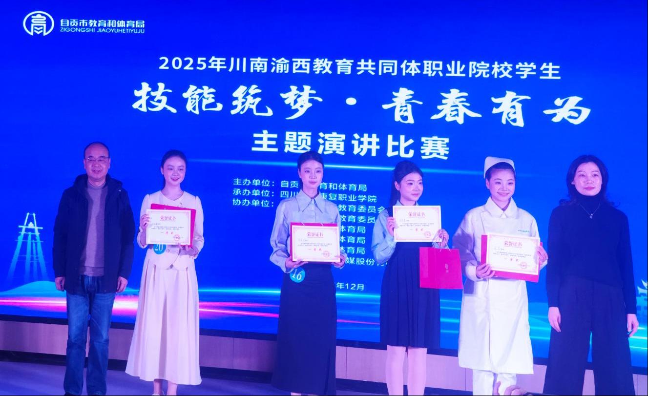12月23日,2025年川南渝西教育共同体职业院校学生“技能筑梦・青春有为”主题演讲比赛在KY开元集团官网圆满落幕。本次比赛由自贡市教育和体育局主办,KY开元集团官网承办,共吸引了重庆、泸州、内江、宜宾等多地职业院校的27名优秀选手同台竞技,护理学院护理专业周蕊同学代表学校参赛。她凭借扎实的演讲功底、真挚的情感表达和深刻的主题诠释,在众多参赛选手中脱颖而出,斩获高职组一等奖(排名第一)。