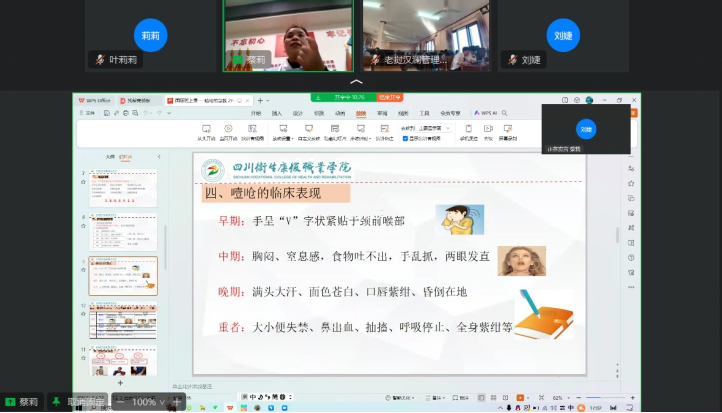 护理学院教师蔡莉现场演示并指导演练了实用急救技能——海姆立克法,帮助参训人员掌握相关技巧,为紧急情况下噎食急救提供帮助。