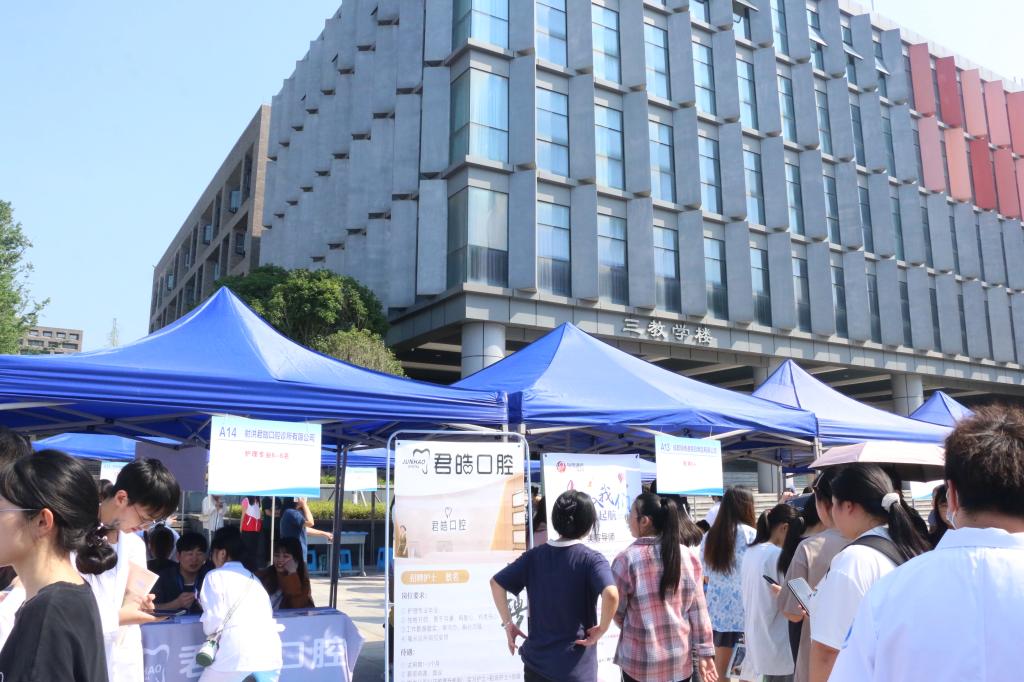 为搭建毕业生与用人单位就业双选平台,促进毕业生充分就业,4月26日上午,护理学院2024届毕业生专场招聘会在学校校史长廊举行,64家用人单位现场参会,提供招聘岗位近1000个。