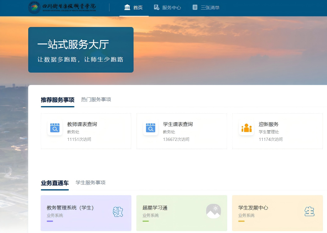 2、进入首页后点击界面“教务管理系统”