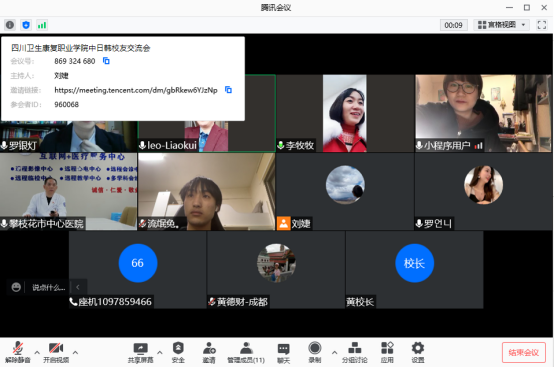 11月28日,学院日本、韩国校友交流会在腾讯会议平台顺利举行。行政办公室主任李琴、工作人员刘婕,中国、日本、韩国校友参会,会议由李琴主持。