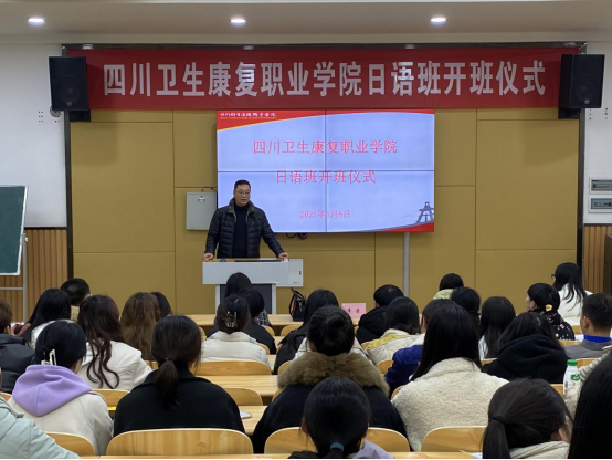 1月6日下午,学院日语班开班仪式在四教D103教室顺利举行。学院副院长章荣、行政办公室副主任李琴、护理系副主任兰瑚、日语班班主任彭涛及全体日语班学生参加此次开班仪式。开班仪式由行政办公室刘婕主持。