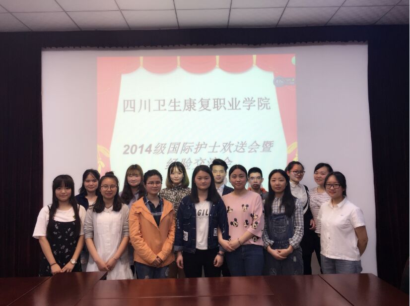 2017年5月7日晚,学校在二会议室举办了2014级国际护士欢送会暨经验交流会。会议由行政办公室李昉老师主持。任子涵、陈静、田云强等即将赴国外就业的同学与2015级、2016级部分师弟师妹们进行了座谈。