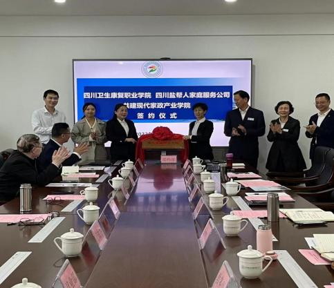 2022年11月4日上午,四川盐帮人家庭服务公司总经理曾迪慧一行到学院与开元官网在502会议室隆重举行共建现代家政产业学院签约仪式。学院院长黄昌平,副院长罗天蔚、章荣和相关部门负责人参加会议。