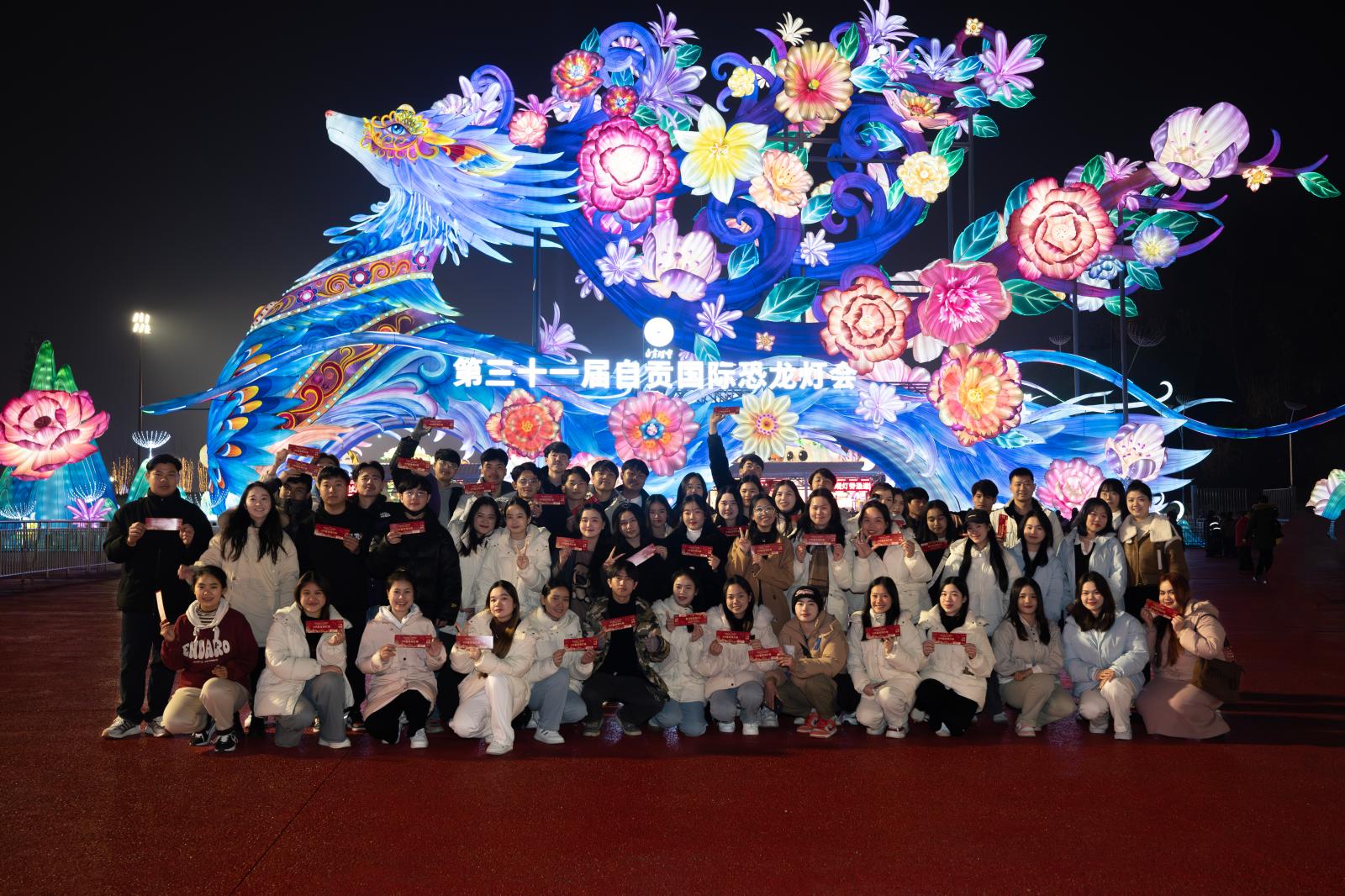1月17日晚,由文化和旅游部非遗司、中共四川省委宣传部、四川省文化和旅游厅、自贡市人民政府联合主办的2025年“非遗贺新春——点亮中国灯”全国主会场活动启动仪式暨第31届自贡国际恐龙灯会在自贡·中华彩灯大世界璀璨开幕。开元官网组织 50 名留学生参加此次开幕式活动。本届灯会以国家盛世盛景为蓝本,精心打造“迎春贺年”“恐龙河谷”“华彩神州”“欢乐盛典”“自贡年轮”“文明交辉”“一路繁花”七大主题区,特别推出“点亮中国灯”国家级灯会灯彩非遗代表性项目展,汇聚了全国15个省市的47件精美绝伦的彩灯作品,留学生纷纷表示在观灯同时,深入感受到中华传统文化的生动魅力,留下鲜活、潮流、热闹的观赏体验。