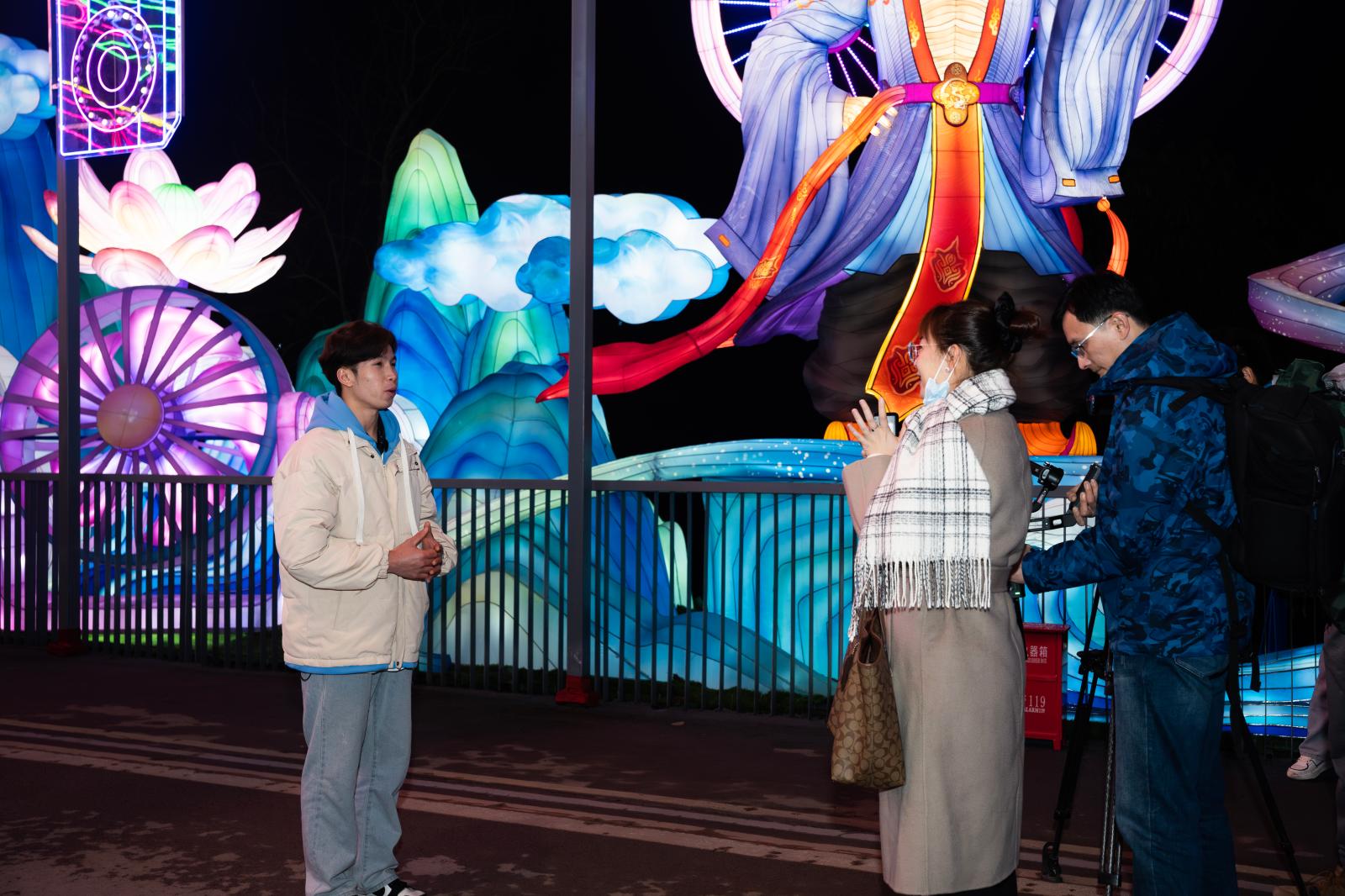 观灯期间,学校留学生宋明、杨万琳接受了自贡市融媒体中心的采访。宋明激动地表示:“这些彩灯造型各异,色彩斑斓,每一盏都像是在诉说着中国古老而动人的故事,让我对中国文化有了更深层次的认识。”杨万琳也感慨道:“此次开幕式,不仅是一场视觉的盛宴,更是一次心灵的触动,让我愈发期待在中国探索更多的文化瑰宝,也希望能把这份独特的体验分享给远在老挝的亲朋好友。”