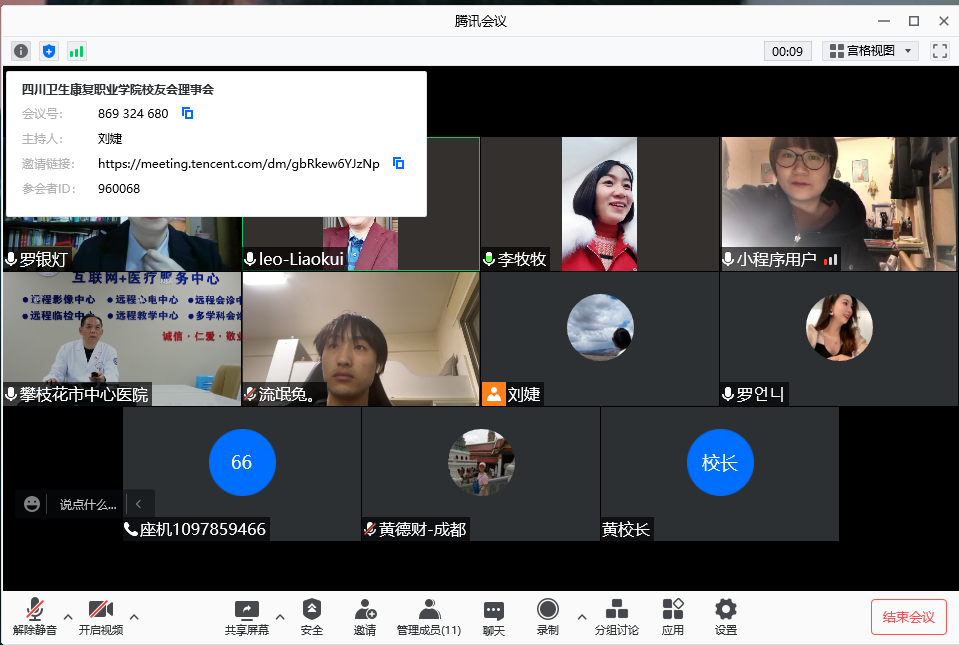 12月31日,学院日本、韩国校友会线上成立工作会在腾讯会议平台顺利举行。学院院长黄昌平、行政办公室主任李琴、各校友分会会长及日本、韩国全体校友参会,会议由李琴主持。