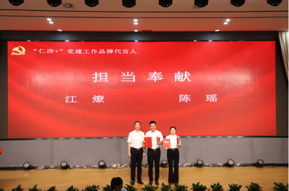 今年,学院举办了首届党建工作品牌代言人评选活动,在学校和附属医院2037名党员中评选出了10名政治过硬、业绩突出、特色鲜明的党建工作品牌代言人。大会为10名“仁济+”党建工作品牌代言人进行了颁奖。“仁德善教”党建工作品牌代表邹金梅、“济世精术”党建工作品牌代表陈云波、“自强创新”党建工作品牌代表张翠翠、“担当奉献”党建工作品牌代表江燎、“忠诚清廉”党建工作品牌代表杨光芬先后分享了个人先进事迹。他们守初心、担使命的事迹深深打动了在座每一位党员,值得广大党员习。