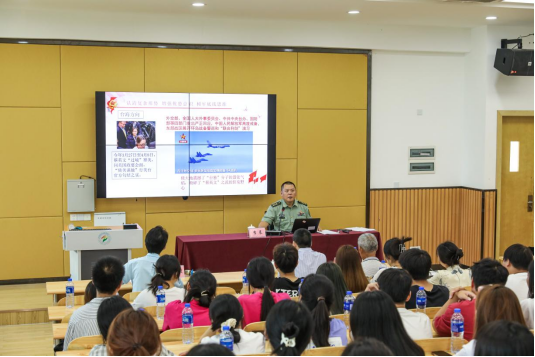 报告中,李晨以“当前国际社会的形势政策”为题,详尽分析百年未有之大变局下的国际安全环境,讲述国防知识以及国防教育的重要性,促进同学们形成对国家意识、国防观念的完整认知,告诉同学们要强化忧患意识,提高身心素质,用青春和热血筑起坚固的国防之墙。