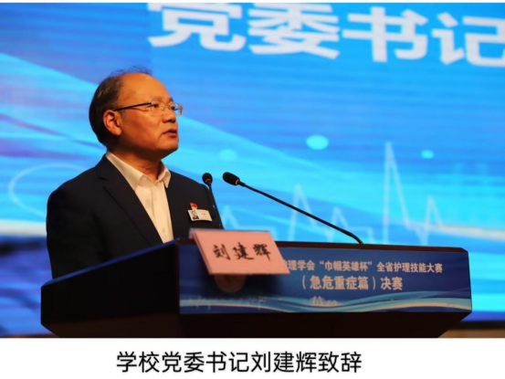 学校党委书记刘建辉在致辞中表示,本次大赛是在全国上下深入学习贯彻党的二十大精神之际举办的一次盛会,是贯彻落实“教育强国、人才强国、创新强国”战略的重要举措,承办本次大赛,对于提高学校人才培养质量,深化教育教学改革,促进校企合作办学,具有十分重要的意义。我们将以本次比赛为契机,不断深化教育教学改革,提升人才培养质量,推动我省高等护理教育事业高质量发展,并预祝此次大赛取得圆满成功!