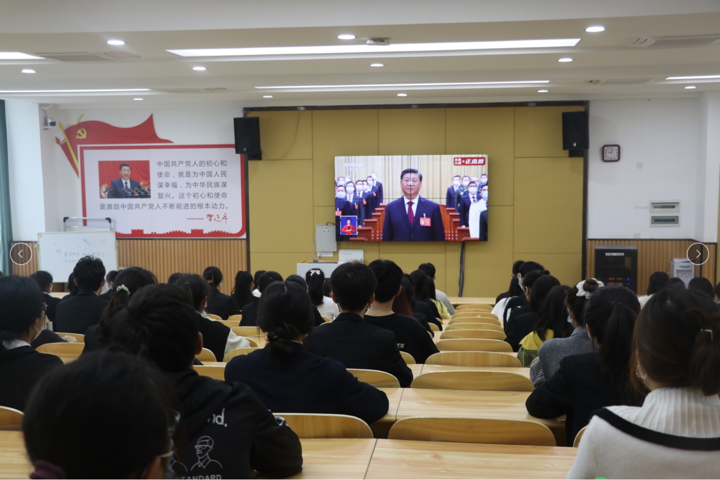 10月16日上午10时,中国共产党第二十次全国代表大会在北京隆重开幕。学校积极组织党员干部、师生收看开幕会直播。在集中观看现场,师生全神贯注,凝神细听,认真记笔记,并结合自身学习工作实际畅谈感想体会。学校领导班子成员与师生一同收看开幕会。