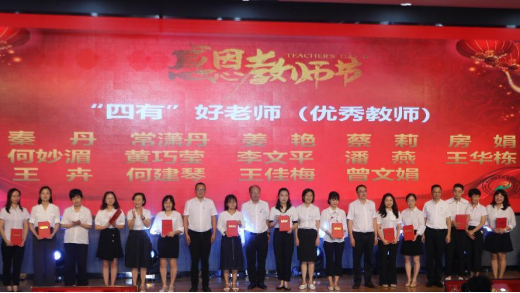 副院长申奎宣读表彰决定,领导班子为89名“四有”好老师颁奖。