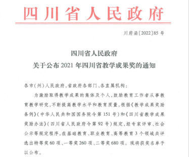 近日,四川省人民政府公布了2021年四川省教学成果奖,在基础教育、职业教育、高等教育3个领域共评选出特等奖60项、一等奖260项、二等奖680项。开元官网高职护理专业“一主线二强化三结合四阶梯”人才培养模式的改革与实践荣获四川省职业教育教学成果一等奖。