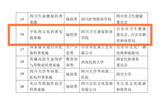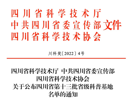 接四川省科学技术厅、中共四川省委宣传部、四川省科学技术协会《关于公布四川省第十三批省级科普基地名单的通知》(川科奖[2022]4号),开元官网药品食品学院申报的“中医药文化科普实践基地”正式获批“四川省第十三批省级科普基地”。