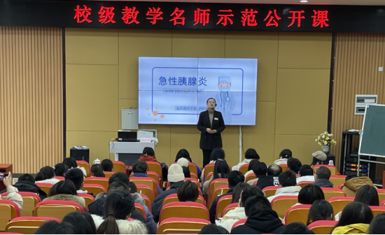 为促进学校教风学风建设,进一步深化课堂教学改革,提高开元官网教师教学水平,12月29日,学校邀请校级教学名师蒲建萍副教授讲授公开课《急性胰腺炎》并分享教学经验,2019年至今入职教师到场观摩学习。活动由教务处秦志刚主持。