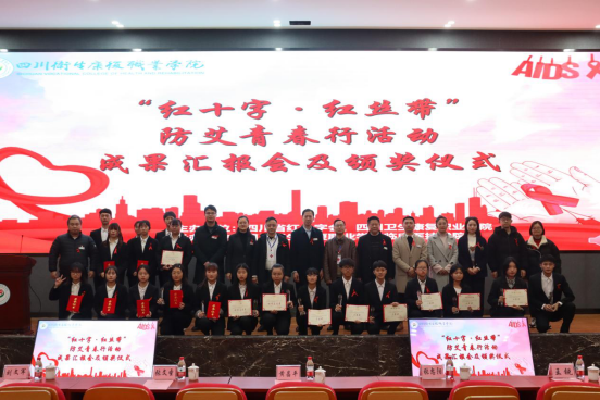 12月24日,“红十字·红丝带”防艾青春行活动汇报会在学校举行。自贡市红十字协会常务副会长张文圣、综合办主任张忠阳、学院副院长黄昌平、医学影像系主任刘文军、临床医学系主任蒲建萍,以及师生代表参加此次活动。