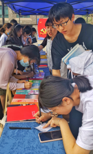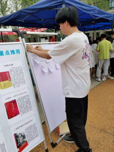 4月23日,在第26个“世界读书日”之际,图书馆在校园内举行了“党史党建文献展”,为师生读者推广了《之江新语》《习近平在正定》等党建重点书目及出版物近百本。活动现场开展了“优秀书目我推荐”“我的最爱我分享”“你的期待我来找”“你的疑问我解答”等丰富多彩的阅读服务。师生读者积极参与荐书赠书活动,近百名踊跃分享读书体会,选到了心仪的图书;不少读者还现场学习了移动图书馆及电子资源获取方法,激发了浓厚的学习兴趣。