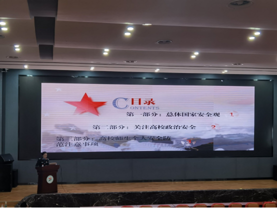 4月13至14日,学院邀请自贡市国家安全局人民防线支队长到校开展总体国家安全观主题教育讲座。为师生详细解读总体国家安全观的内涵和外延,明确当前高校应当从哪些方面入手高度关注政治安全,用典型案例介绍高校师生个人如何做好安全防范。