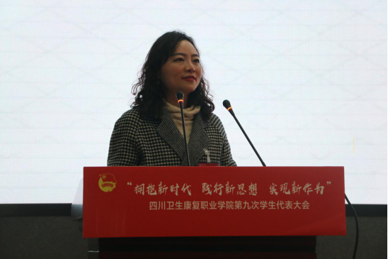 共青团自贡市委副书记兰斓代表团市委向大会的召开表示热烈的祝贺。她表示,学院的各项团学工作扎实推进,在参与自贡文化发展和城市建设中发挥了重要作用,希望学院团学工作再接再厉,再创佳绩。