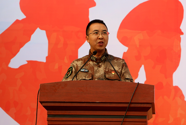 滕建军代表沿滩区人民武装部向2019级全体同学表示热烈祝贺,向为军训工作付出辛勤汗水的老师和同学们表示诚挚的谢意,并向全体学生提出希望和要求。