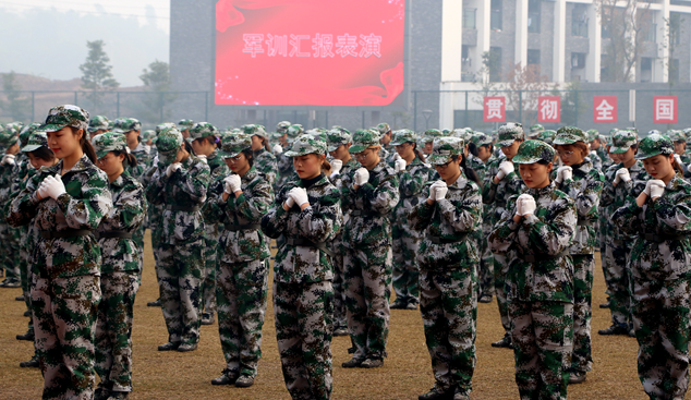 会上,3000余名2019级同学以饱满的精神、昂扬的风貌汇报了十天的军训内容。在奏唱国歌后,伴随激昂的《中国人民解放军进行曲》,受训方阵依次走过主席台,同学们步履铿锵、目光坚定、身姿挺拔,展现了川康学子的自信与风采!随后,受训同学进行了《感恩的心》手语、军体拳、《歌唱祖国》表演,展示了军训取得的丰硕成果。