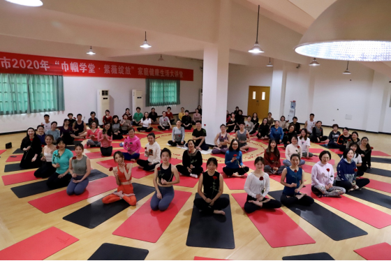 为积极响应职业教育活动周号召,更好推进全民健身运动,11月6日,由市妇联主办,学院工会和人文社科部联合承办的“巾帼学堂·紫薇绽放”家庭健康生活大讲堂在学院瑜伽室顺利举行。市妇联党组书记、主席沈焰林,市县乡村四级妇联执委、巾帼骨干共60余人参加。人文社科部江燎老师为大家带来了一堂精彩的瑜伽大餐。