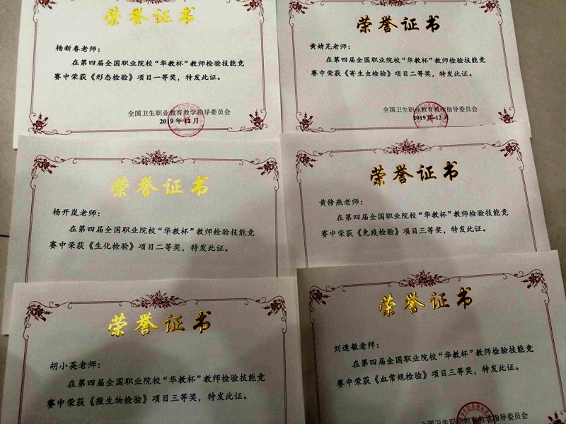 经过紧张而又激烈的角逐,医学检验系副主任杨新春获形态检验项目一等奖,杨开岚老师获生化检验项目二等奖,黄婧芫老师获寄生虫检验项目二等奖,黄修燕、胡小英、刘速敏老师分别获免疫检验、微生物检验、血常规项目三等奖。此外杨新春、刘孝桢、黄修燕、毛晓雪、余建洪、张肃川、谭晓兰7位老师还分别斩获第二届全国职业院校“人卫杯”检验专业微课大赛五个二等奖,两个三等奖。