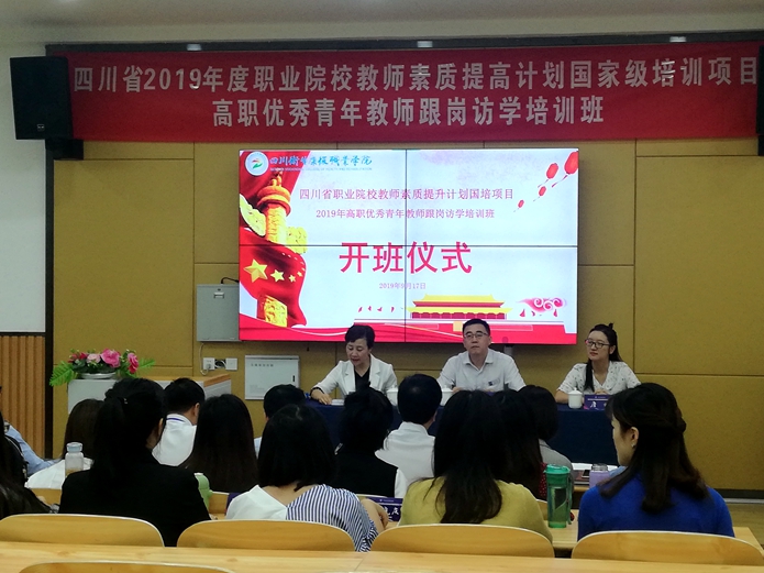 经过前期充分准备,该培训项目于9月17日顺利开班,培训为期4周(160学时),培训对象来自川内8所高职院校的14名优秀青年教师。主要采取“师带徒”培训模式,内容包括教学设计、教学演练、教学研究、教学实践,科研课题项目、学校和班级管理等。同时,重点开展备课、说课、教学演练,进行评课、研课、磨课训练和教科研活动。