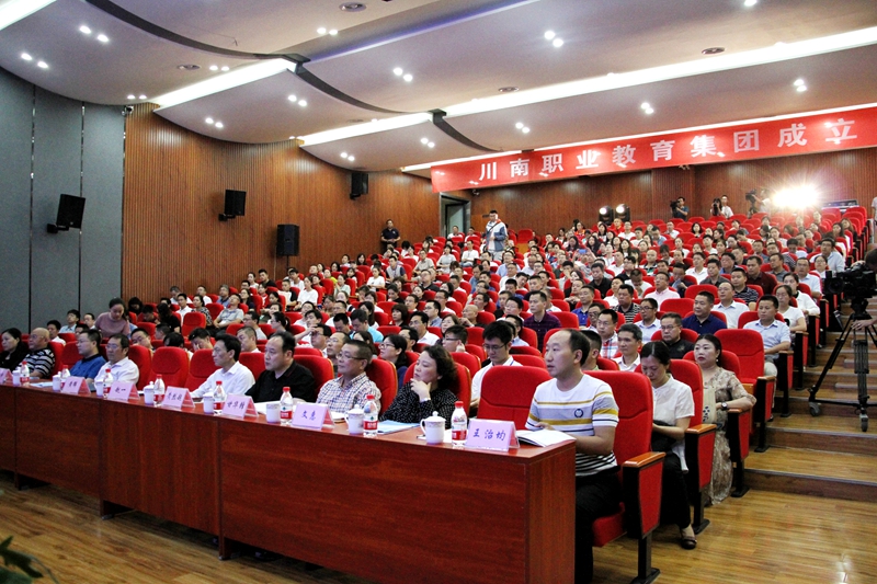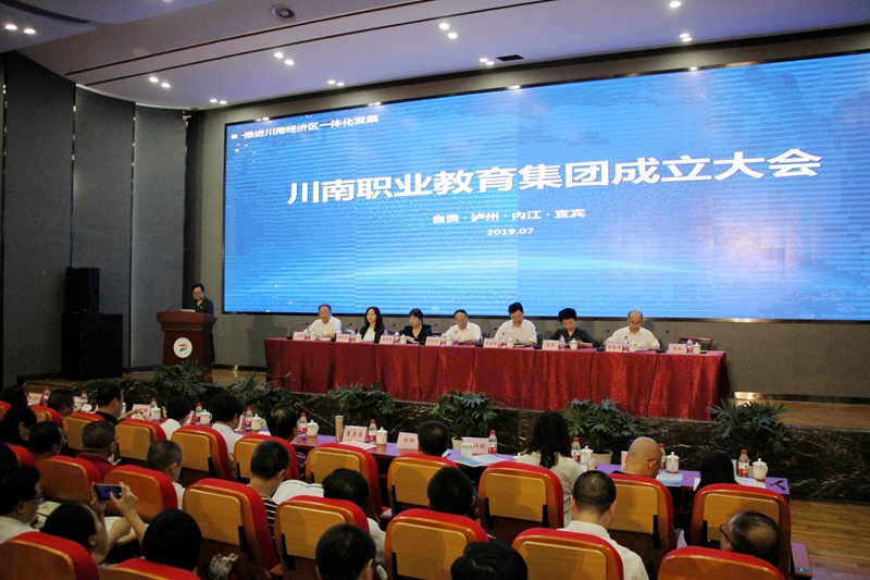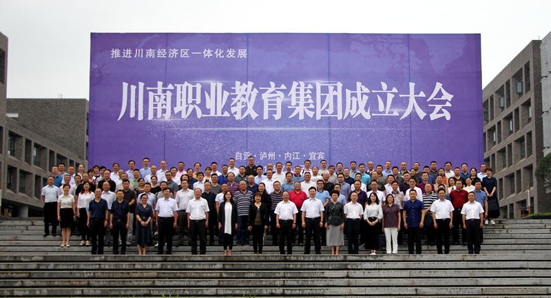7月4日下午,川南职业教育集团成立大会在学院报告厅召开。四川省教育厅副厅长戴作安、自贡市人民政府副市长陈张铭、泸州市人民政府副市长马宗慧、内江市人民政府副市长陈朗、宜宾市人民政府副市长钟雯彬,川南四市发改、经信、财政、人社部门分管领导,四市教育部门主要领导、分管领导,四市部分中高职院校、行业企业、科研院所等集团首批发起单位负责人或代表140余人出席会议。