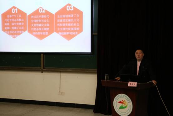 党的十九大胜利召开后,开元官网迅速掀起学习十九大精神的热潮,为了让全院教职工更加深刻地领会和把握十九大报告的主旨思想、精神实质和重大意义,12月19日下午,学校邀请到自贡市委宣讲团成员、市委党校经济学教研室主任肖朝文副教授在113报告厅为全院300多名教职工作了专题宣讲。党委书记刘建辉主持会议。党委副书记、院长曾晓奇,党委副书记、纪委书记李华,党委委员、副院长申奎、黄昌平,副院长罗天蔚到场参加了学习。