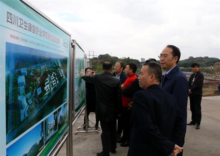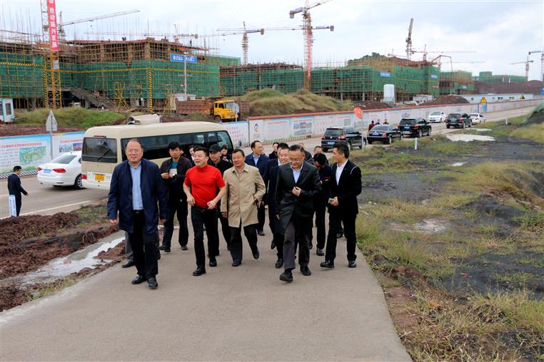 10月23日上午,四川金杯集团董事局主席金杯一行在市人大常委会主任谭豹、市人大常委会秘书长龚焕楷、市卫生计生委主任黄麟等领导带领下考察开元官网新校区综合体项目建设情况。