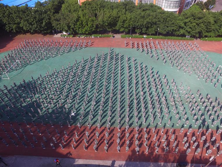 在军训汇报表演中,手语操《国家》《感恩的心》充分展示了新生们乐观向上、自信自强的精神,以及对国家、学校、父母的无限感激之情。
