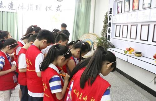 李德英首先介绍了学院解剖陈列室及实验室的分布,并讲解了医学生誓言的意义。吴波也介绍了解剖学之父维萨里、万婴之母林巧稚的情况。接着吴波和杨勇带领小记者在遗体捐赠纪念室举行了简短的遗体捐赠者默哀仪式,讲述了捐赠者感人的故事,还带领大家参观解剖陈列室,对标本的制作、标本的保存、人体的基本结构等都作了简要介绍,让小记者们对人体有了一定的了解,对生命有了更深的认识。参观结束以后,小记者们和老师在A115进行了面对面交流。小记者们针对实验室设施,标本制作难度,人体结构的奥秘等积极提问,吴波都详细进行了解答,并欢迎大家加入医学的队伍。