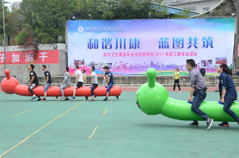 4月28日下午,学院及附院工会在运动场举办了以“和谐川康·蓝图共筑''为主题的2017年职工趣味运动会。本次趣味运动会包括学院及附院各职能处室、系部、临床科室职工组成的10个工会片区的10支参赛队伍,近400名教职员工参加。运动会开幕式由学院党委副书记、纪委书记李华主持。