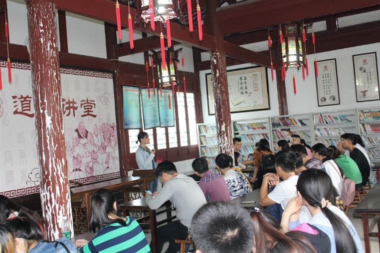 大家首先达到活动的第一站:永和大学堂。在学堂里,学生会组织部首先为大家讲解了江姐的生平事迹和红岩精神内涵,接着大家踊跃分享了自己印象最为深刻的长征故事。