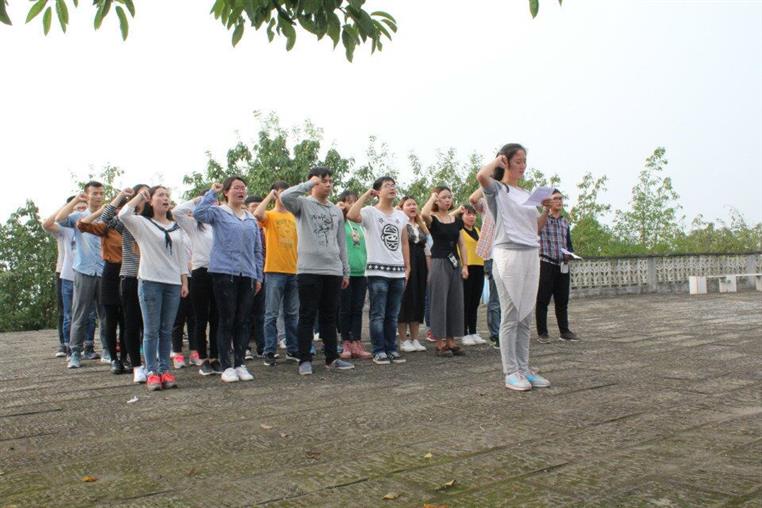 随后,大家继续向第二站--官印山出发。正直晌午,近4公里的乡村小道蜿蜒盘旋至山顶,同学们却没有丝毫怠意,反而兴致高昂地唱着红歌一路前行。在红岩烈士江姐的塑像前,同学们进行了庄严的瞻仰和祭奠,王庆老师带领大家进行了铭志宣誓仪式,向革命先烈表达崇敬之情,喊出了对党的庄严承诺,献上了同学们亲手制作的手工花。通过瞻仰革命烈士塑像,参观先烈遗物,聆听英雄事迹,同学们切身感受到了革命先烈们为祖国革命事业做出的巨大牺牲和坚定的共产主义信仰,思想受到极大触动。