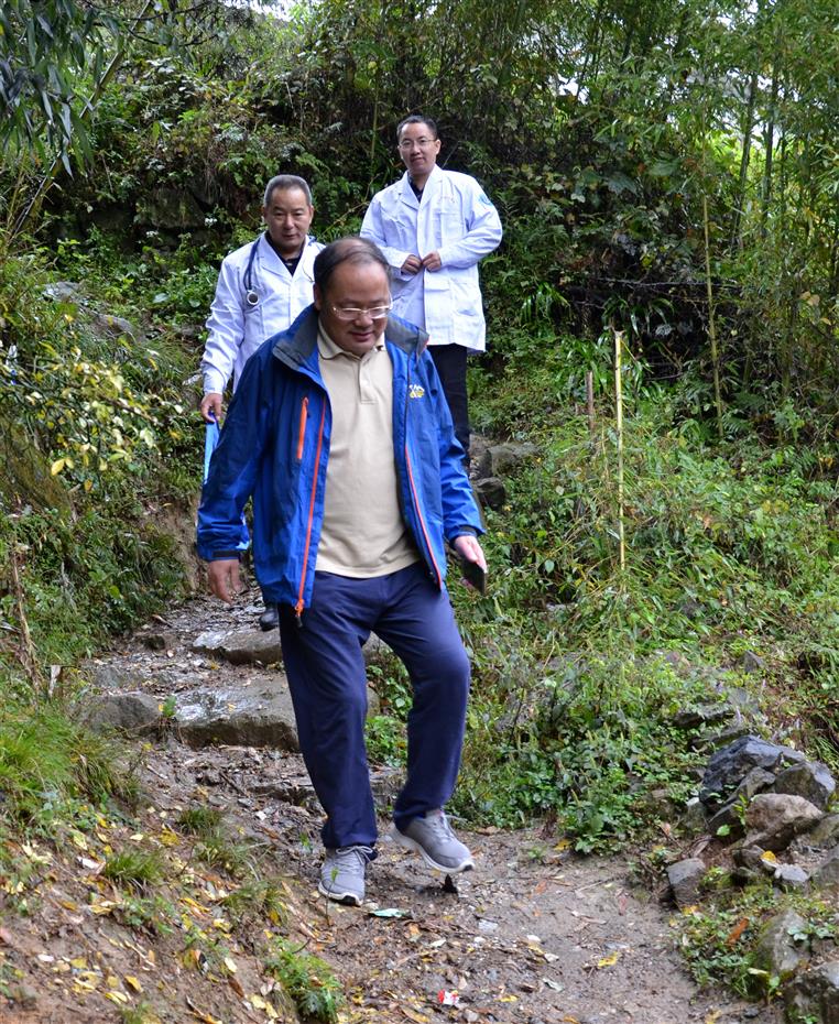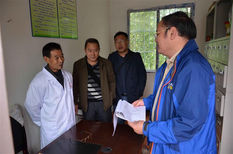 之后,刘建辉一行在视察了由学院援建村卫生室的建设情况后,又冒雨看望并慰问了三户患有矽肺病的贫困联系户。每到一处,刘建辉都与他们促膝交谈,详细了解贫困户的基本信息、家庭成员信息、身体健康状况、致贫原因、收入水平、大额支出以及住房、用水用电、劳动就业等情况。随行的专家对其进行了详细的病史询问和体格检查,进行了疾病诊断,针对病情对症免费赠送了药品,并在现场指导患者如何用药,一定程度上缓解了他们的症状。刘建辉一行在与贫困户的沟通和诊疗过程中,增进了感情,在交流中收获了信任,受到联系户的欢迎,得到了群众的肯定。