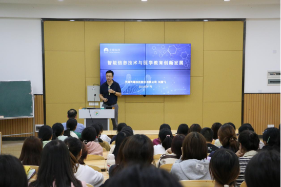 刘雁飞博士以国内一线医学教具制造企业的视角,展现了“虚拟现实”“人工智能”“康复机器人”、ChatGPT等人工智能和虚拟技术为人们生活带来的便利以及在医学教育领域的应用,阐释了数字化到数“智”化转变的技术进步对医学教育及其变革的帮助和促进,为在场师生带来了一场前沿科技与医学教育的视听盛宴。