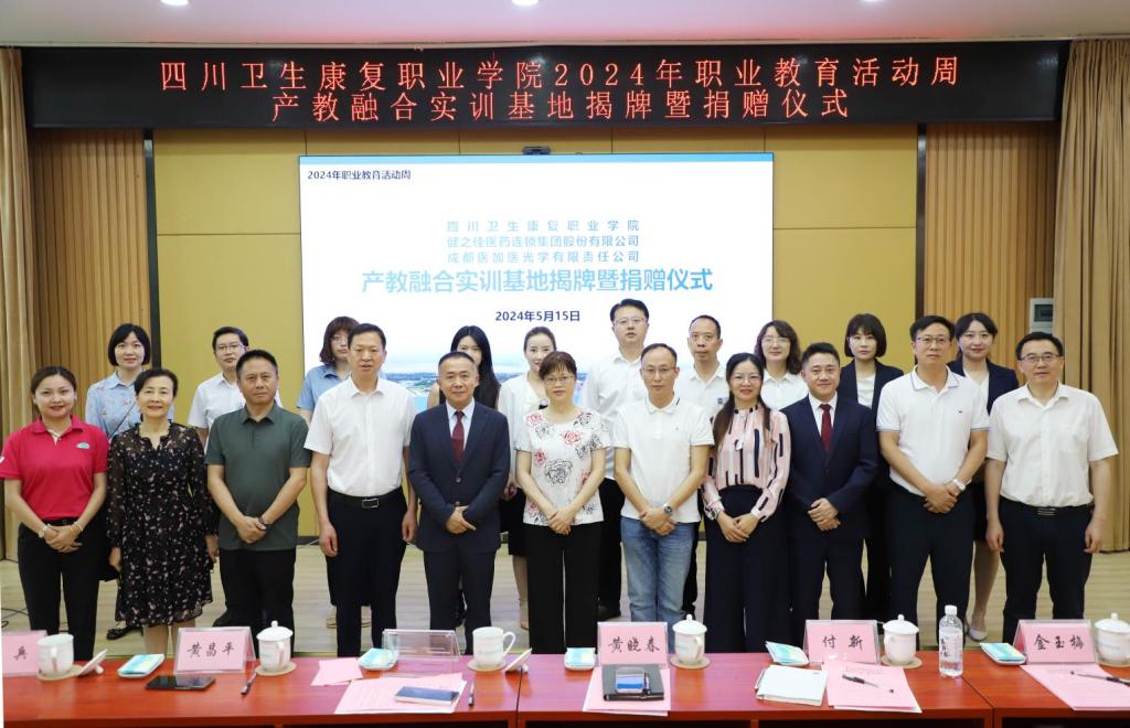 为学习贯彻落实《职业教育产教融合赋能提升行动实施方案(2023—2025年)》 《四川省职业教育条例》等文件精神,探索职业教育产教融合创新发展新生态、校企合作迭代升级新路径,推动教育链、人才链、产业链、创新链的协同发展,深化产教融合、科教融汇。5月15日,“KY开元集团官网与健之佳医药连锁集团股份有限公司、成都医加医光学有限责任公司产教融合实训基地揭牌暨捐赠仪式”在学校举行。